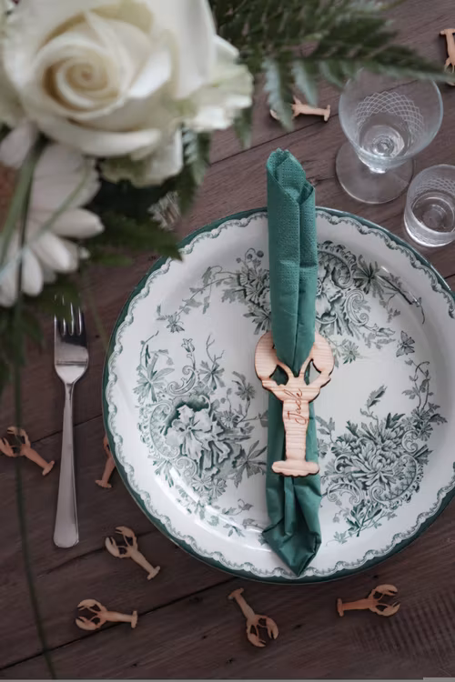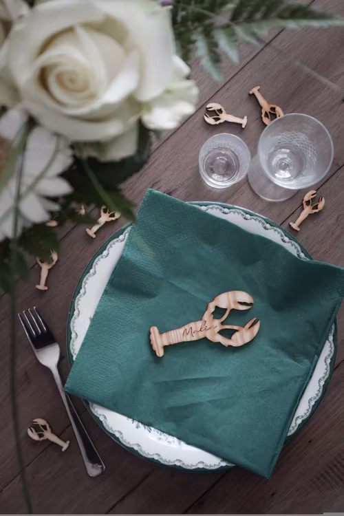 Kräfta i trä med valfritt namn. En rolig detalj som piffar upp kräftskivan och gör den mer personlig!