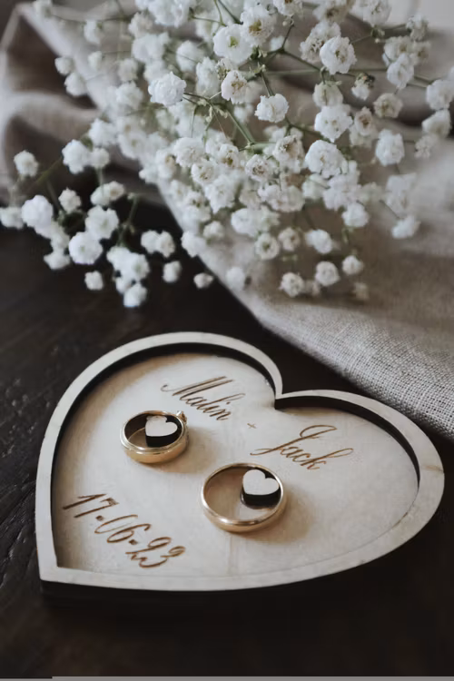 En personlig ask/bricka i trä, vacker detalj till frieriet eller vigseln.