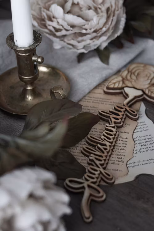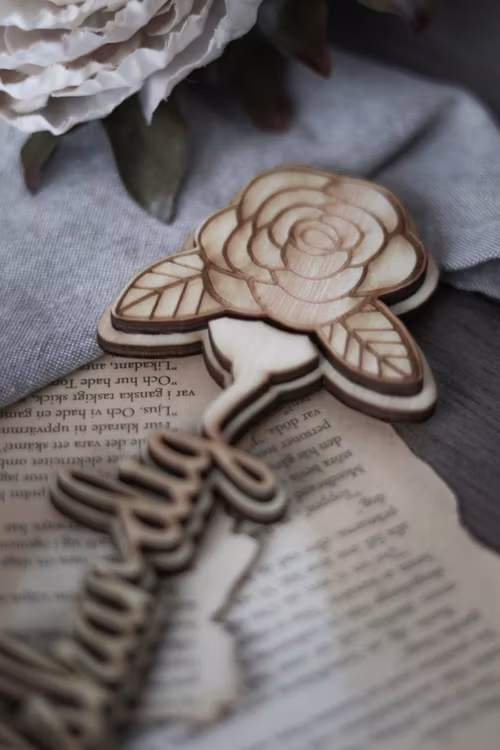 En ”ros” i trä, med 3D effekt. Själken formar texten ”jag älskar dig”. Ge bort till någon du tycker om. En vacker och personlig gåva som blir en fin dekoration och varar i många många år.